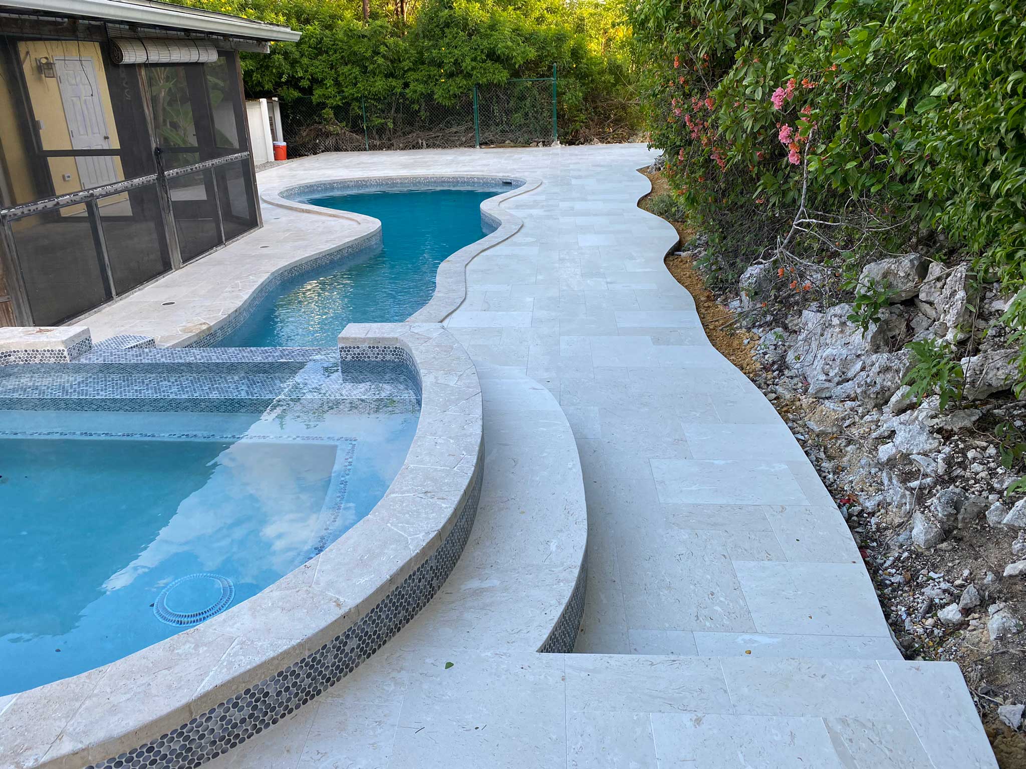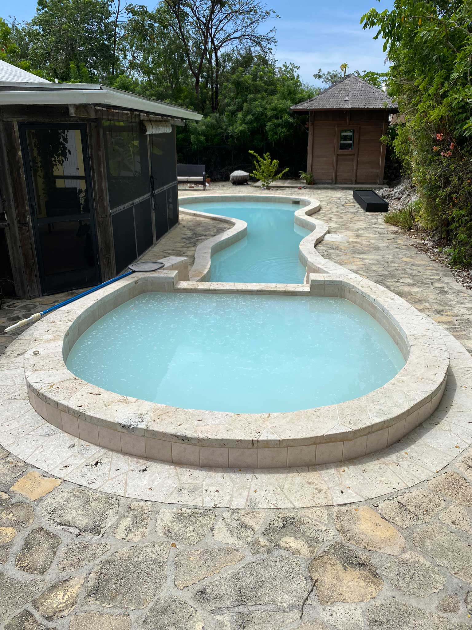 Jacuzzi Restoration, Plumbing Replacement, Tile Upgrade, Unique Pool Shape, Video Documentation
