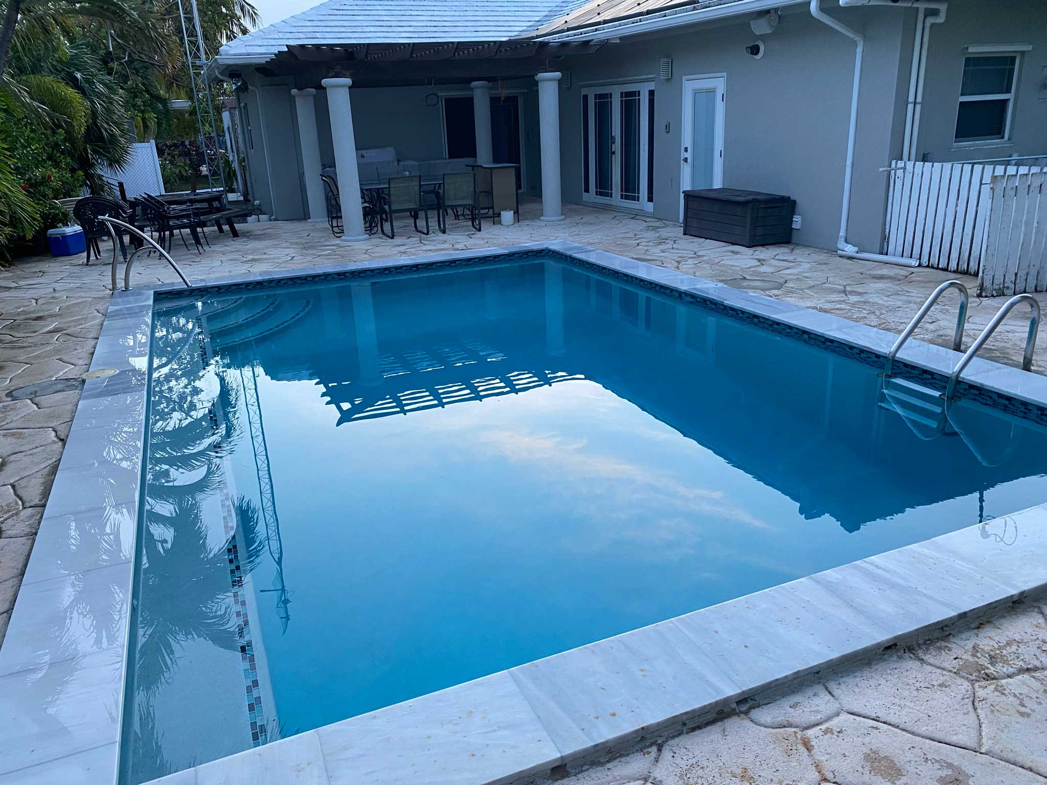 All colors and materials have been updated to reflect the latest trends, bringing a fresh, contemporary feel to the space. The outdated plumbing system was entirely replaced with a new, energy-efficient setup, ensuring the pool not only looks stunning but also operates smoothly and cost-effectively. The result is a rejuvenated pool that blends the old with the new, offering a beautiful and functional backyard retreat.